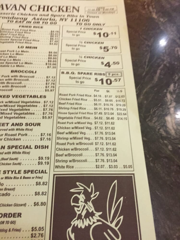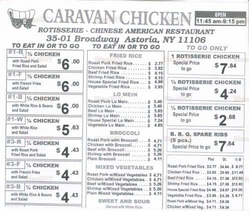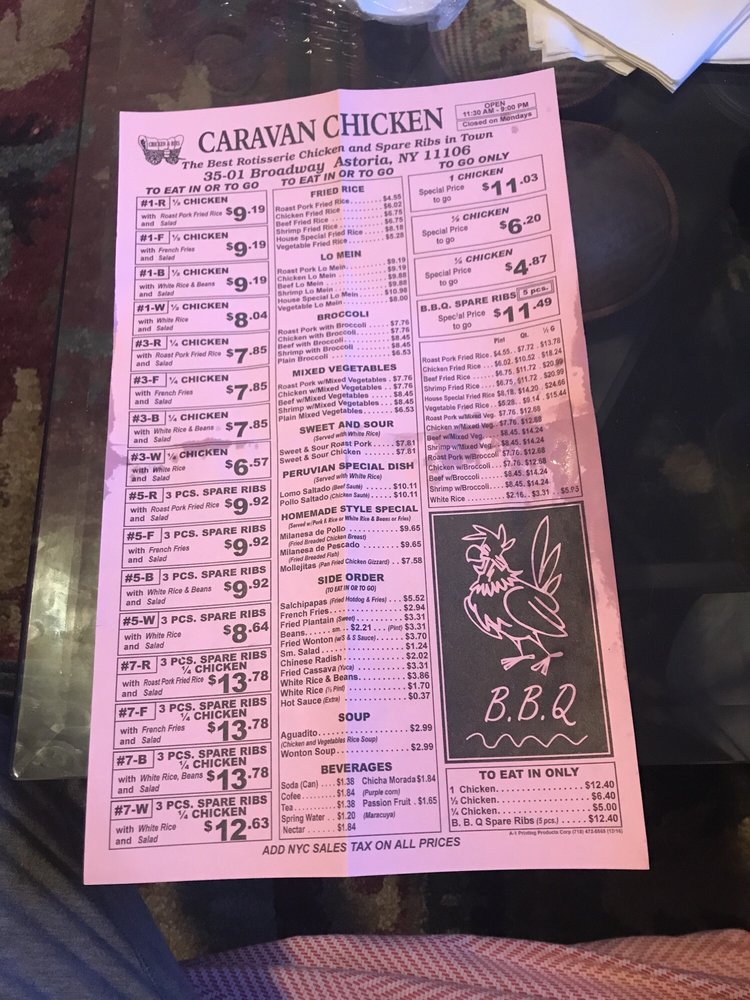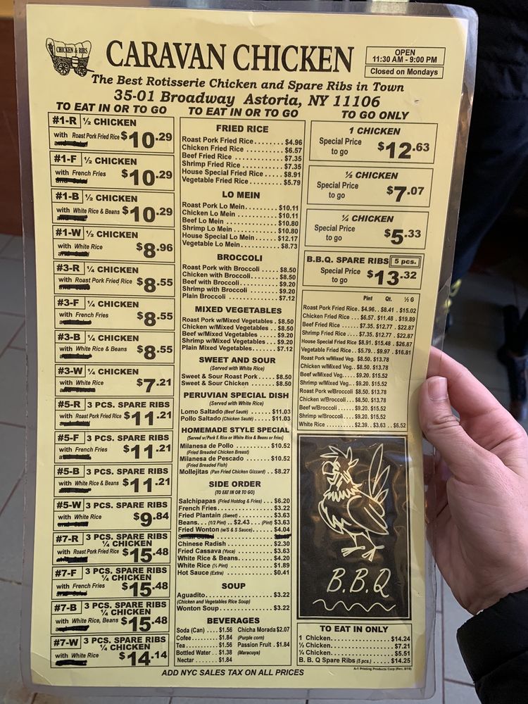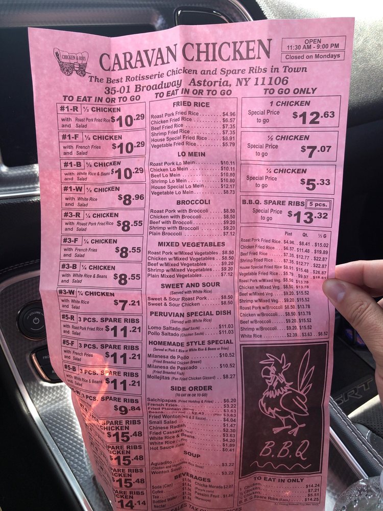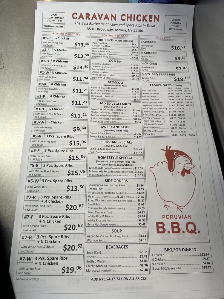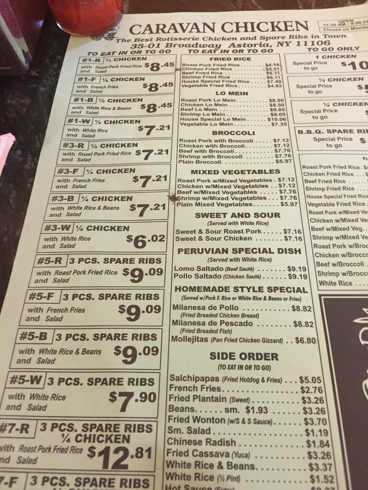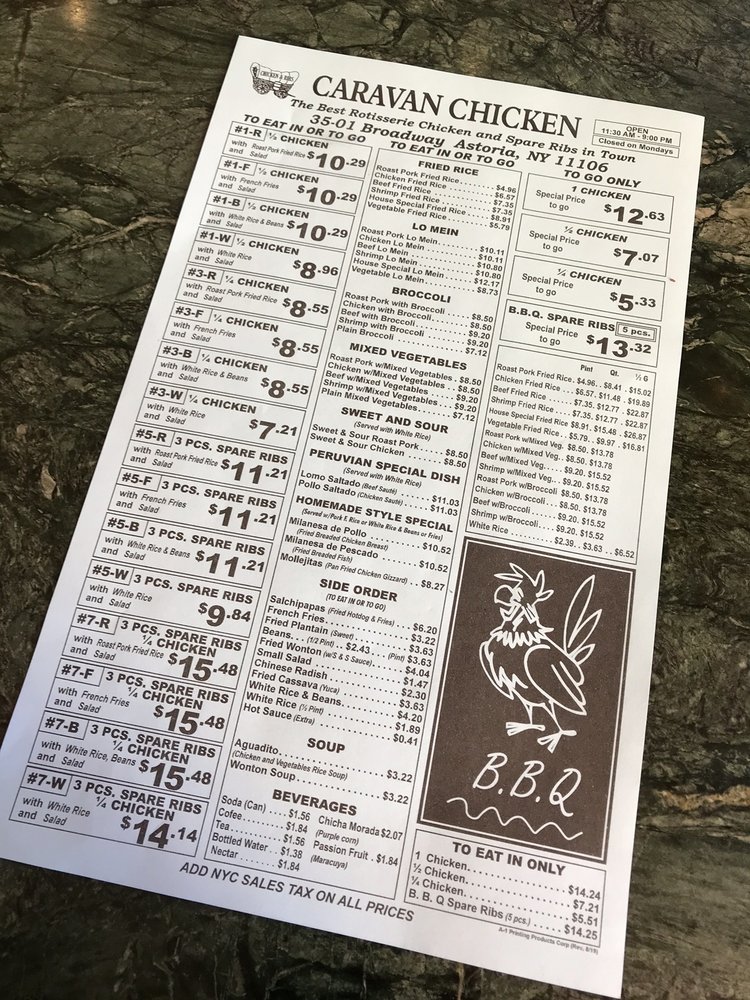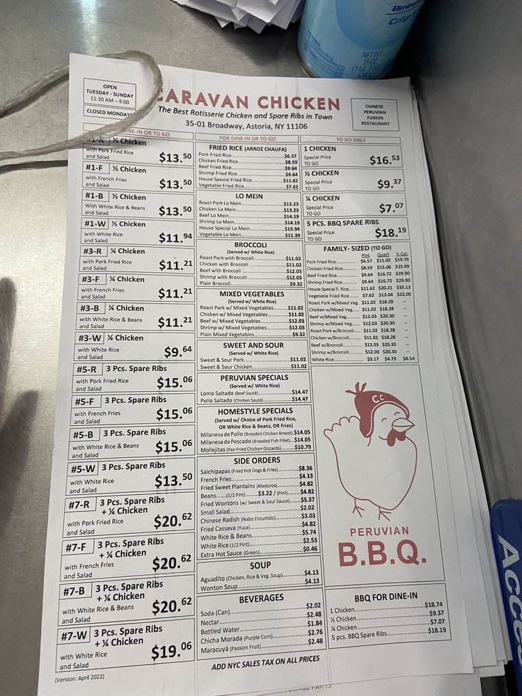 Introducing Caravan Chicken, a Latin American-Peruvian gem located in Astoria, NY. Offering a range of delicious dishes, Caravan Chicken's Rotisserie Chicken is a standout favorite, praised for its tender, flavorful meat and perfectly roasted skin. Customers rave about the green sauce that perfectly complements the chicken. Pair it with sides like Vegetable Fried Rice, Sweet Plantains, or Pork Fried Rice for a complete and satisfying meal. The portions are generous, ensuring a fulfilling dining experience, with options for groups and kids. The casual atmosphere and friendly staff add to the charm of this local staple. Don't miss out on the happy hour deals and catering options. Caravan Chicken is a must-visit for those seeking a taste of authentic Peruvian flavors in a welcoming setting.